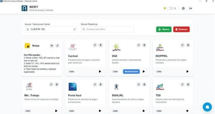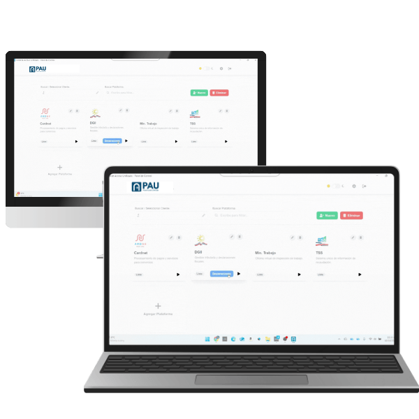 Ya no necesitas entrar por separado a DGII, TSS, bancos y otras plataformas. PAU unifica todos los accesos en un solo entorno, con gestión segura, sin contraseñas múltiples ni bloqueos.